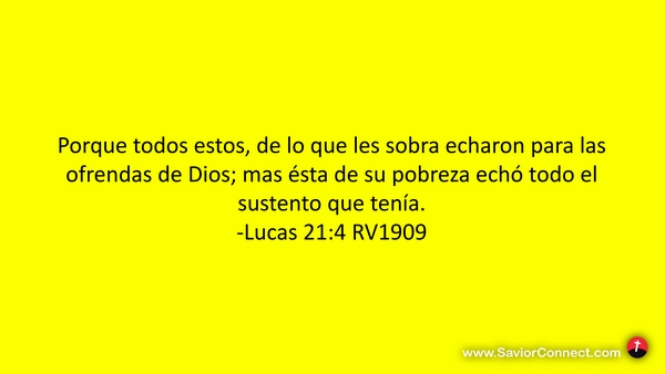 Porque todos estos, de lo que les sobra echaron para las ofrendas de Dios; mas ésta de su pobreza echó todo el sustento que tenía. -Lucas 21:4 RV1909