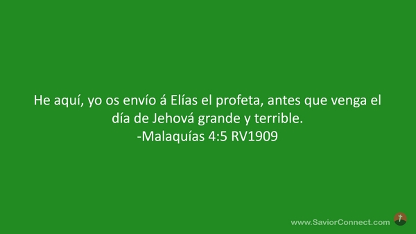 He aquí, yo os envío á Elías el profeta, antes que venga el día de Jehová grande y terrible. -Malaquías 4:5 RV1909