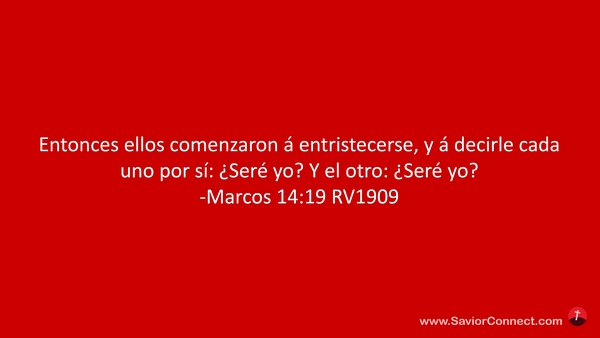 Entonces ellos comenzaron á entristecerse, y á decirle cada uno por sí: ¿Seré yo? Y el otro: ¿Seré yo? -Marcos 14:19 RV1909