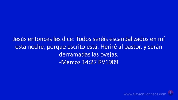 Jesús entonces les dice: Todos seréis escandalizados en mí esta noche; porque escrito está: Heriré al pastor, y serán derramadas las ovejas. -Marcos 14:27 RV1909