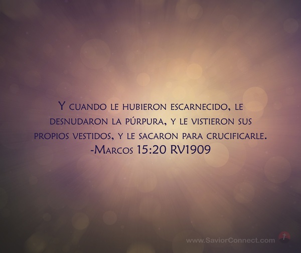Y cuando le hubieron escarnecido, le desnudaron la púrpura, y le vistieron sus propios vestidos, y le sacaron para crucificarle. -Marcos 15:20 RV1909