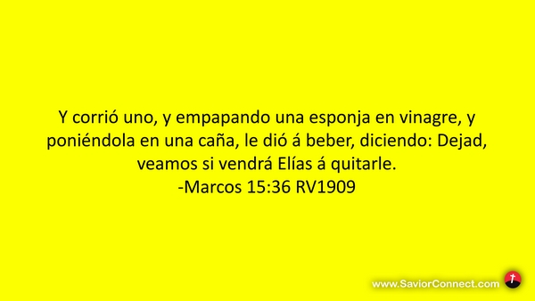 Y corrió uno, y empapando una esponja en vinagre, y poniéndola en una caña, le dió á beber, diciendo: Dejad, veamos si vendrá Elías á quitarle. -Marcos 15:36 RV1909