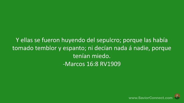 Y ellas se fueron huyendo del sepulcro; porque las había tomado temblor y espanto; ni decían nada á nadie, porque tenían miedo. -Marcos 16:8 RV1909