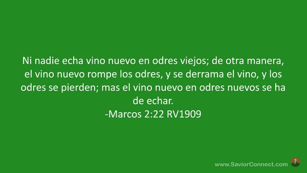 Ni nadie echa vino nuevo en odres viejos; de otra manera, el vino nuevo rompe los odres, y se derrama el vino, y los odres se pierden; mas el vino nuevo en odres nuevos se ha de echar. -Marcos 2:22 RV1909