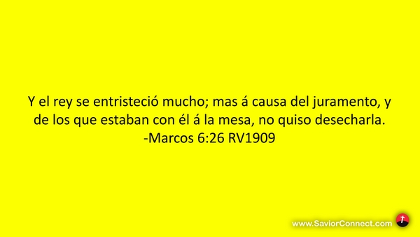 Y el rey se entristeció mucho; mas á causa del juramento, y de los que estaban con él á la mesa, no quiso desecharla. -Marcos 6:26 RV1909