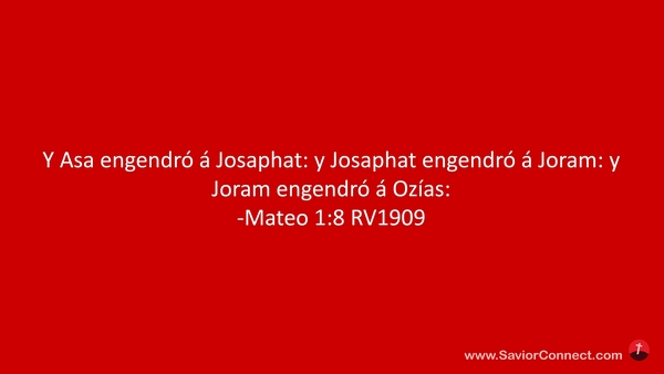 Y Asa engendró á Josaphat: y Josaphat engendró á Joram: y Joram engendró á Ozías: -Mateo 1:8 RV1909