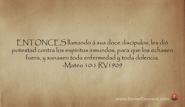 ENTONCES llamando á sus doce discípulos, les dió potestad contra los espíritus inmundos, para que los echasen fuera, y sanasen toda enfermedad y toda dolencia. -Mateo 10:1 RV1909