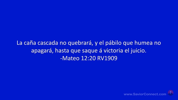 La caña cascada no quebrará, y el pábilo que humea no apagará, hasta que saque á victoria el juicio. -Mateo 12:20 RV1909