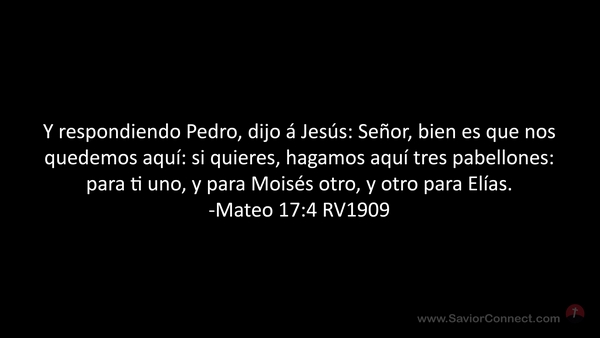 Y respondiendo Pedro, dijo á Jesús: Señor, bien es que nos quedemos aquí: si quieres, hagamos aquí tres pabellones: para ti uno, y para Moisés otro, y otro para Elías. -Mateo 17:4 RV1909