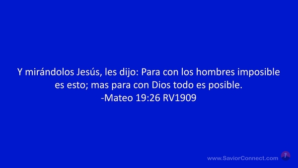 Y mirándolos Jesús, les dijo: Para con los hombres imposible es esto; mas para con Dios todo es posible. -Mateo 19:26 RV1909