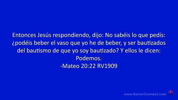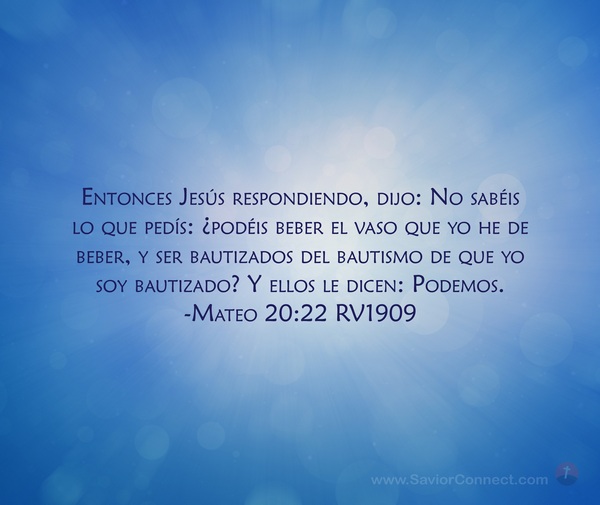 Entonces Jesús respondiendo, dijo: No sabéis lo que pedís: ¿podéis beber el vaso que yo he de beber, y ser bautizados del bautismo de que yo soy bautizado? Y ellos le dicen: Podemos. -Mateo 20:22 RV1909