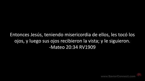 Entonces Jesús, teniendo misericordia de ellos, les tocó los ojos, y luego sus ojos recibieron la vista; y le siguieron. -Mateo 20:34 RV1909