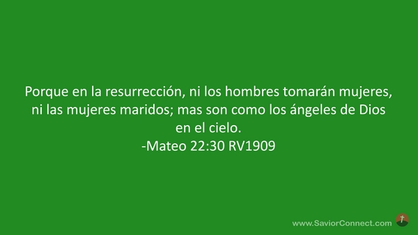 Porque en la resurrección, ni los hombres tomarán mujeres, ni las mujeres maridos; mas son como los ángeles de Dios en el cielo. -Mateo 22:30 RV1909