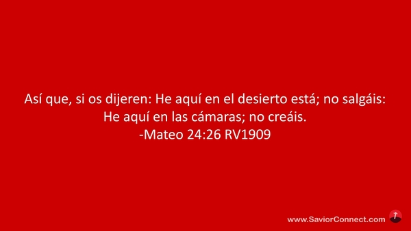 Así que, si os dijeren: He aquí en el desierto está; no salgáis: He aquí en las cámaras; no creáis. -Mateo 24:26 RV1909