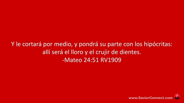 Y le cortará por medio, y pondrá su parte con los hipócritas: allí será el lloro y el crujir de dientes. -Mateo 24:51 RV1909