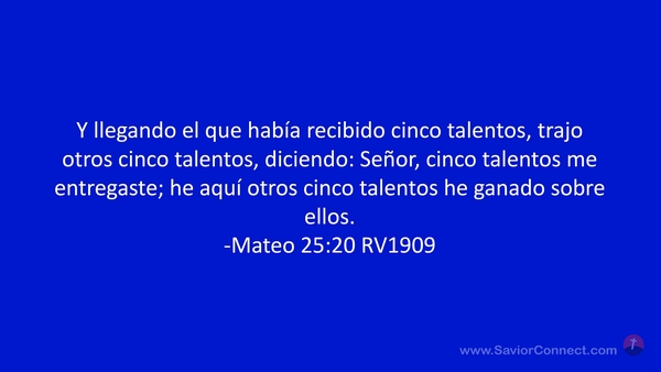 Y llegando el que había recibido cinco talentos, trajo otros cinco talentos, diciendo: Señor, cinco talentos me entregaste; he aquí otros cinco talentos he ganado sobre ellos. -Mateo 25:20 RV1909