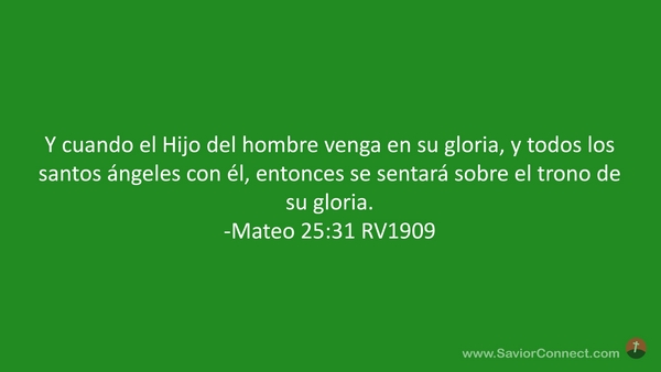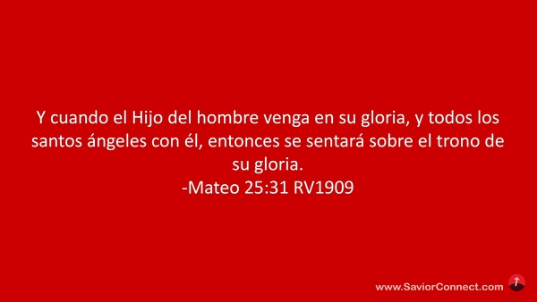 Y cuando el Hijo del hombre venga en su gloria, y todos los santos ángeles con él, entonces se sentará sobre el trono de su gloria. -Mateo 25:31 RV1909