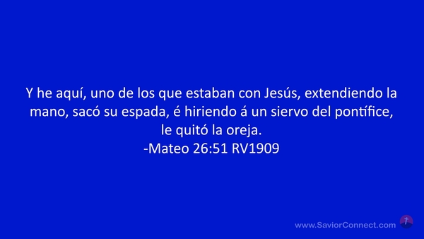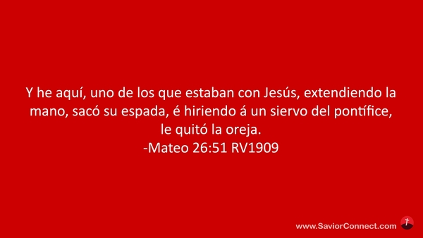Y he aquí, uno de los que estaban con Jesús, extendiendo la mano, sacó su espada, é hiriendo á un siervo del pontífice, le quitó la oreja. -Mateo 26:51 RV1909