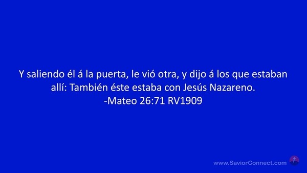Y saliendo él á la puerta, le vió otra, y dijo á los que estaban allí: También éste estaba con Jesús Nazareno. -Mateo 26:71 RV1909