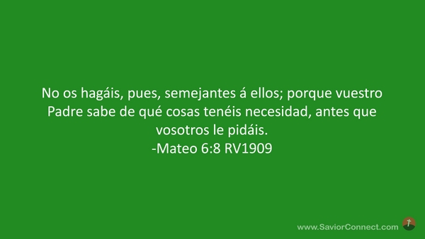 No os hagáis, pues, semejantes á ellos; porque vuestro Padre sabe de qué cosas tenéis necesidad, antes que vosotros le pidáis. -Mateo 6:8 RV1909