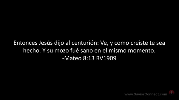 Entonces Jesús dijo al centurión: Ve, y como creiste te sea hecho. Y su mozo fué sano en el mismo momento. -Mateo 8:13 RV1909