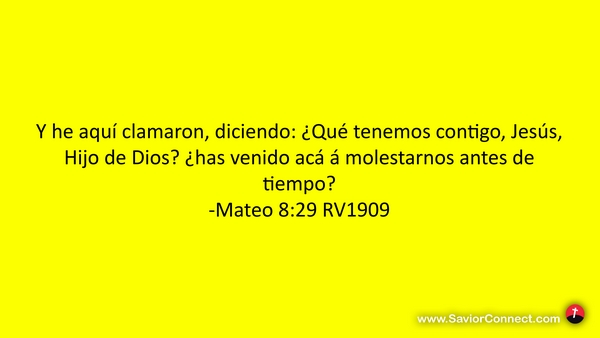 Y he aquí clamaron, diciendo: ¿Qué tenemos contigo, Jesús, Hijo de Dios? ¿has venido acá á molestarnos antes de tiempo? -Mateo 8:29 RV1909