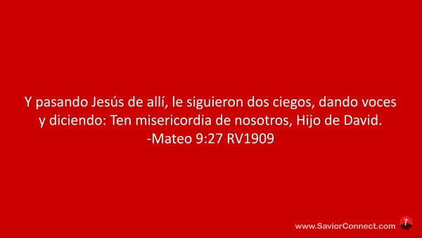 Y pasando Jesús de allí, le siguieron dos ciegos, dando voces y diciendo: Ten misericordia de nosotros, Hijo de David. -Mateo 9:27 RV1909