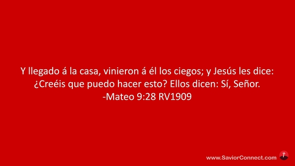 Y llegado á la casa, vinieron á él los ciegos; y Jesús les dice: ¿Creéis que puedo hacer esto? Ellos dicen: Sí, Señor. -Mateo 9:28 RV1909