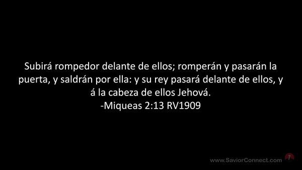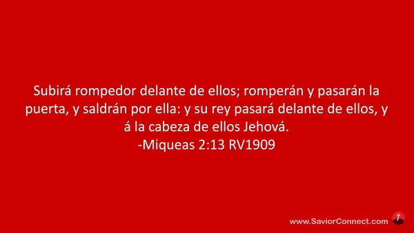 Subirá rompedor delante de ellos; romperán y pasarán la puerta, y saldrán por ella: y su rey pasará delante de ellos, y á la cabeza de ellos Jehová. -Miqueas 2:13 RV1909