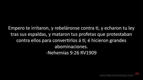 Empero te irritaron, y rebeláronse contra ti, y echaron tu ley tras sus espaldas, y mataron tus profetas que protestaban contra ellos para convertirlos á ti; é hicieron grandes abominaciones. -Nehemías 9:26 RV1909