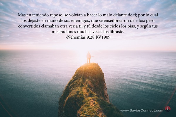 Mas en teniendo reposo, se volvían á hacer lo malo delante de ti; por lo cual los dejaste en mano de sus enemigos, que se enseñorearon de ellos: pero convertidos clamaban otra vez á ti, y tú desde los cielos los oías, y según tus miseraciones muchas veces los libraste. -Nehemías 9:28 RV1909