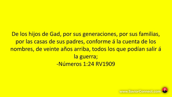 De los hijos de Gad, por sus generaciones, por sus familias, por las casas de sus padres, conforme á la cuenta de los nombres, de veinte años arriba, todos los que podían salir á la guerra; -Números 1:24 RV1909