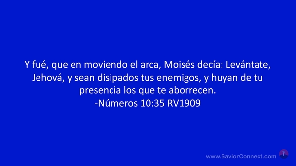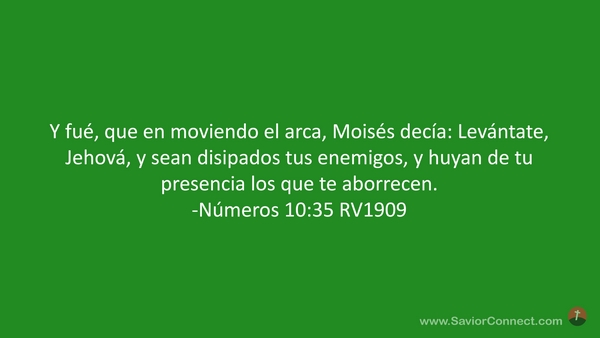 Y fué, que en moviendo el arca, Moisés decía: Levántate, Jehová, y sean disipados tus enemigos, y huyan de tu presencia los que te aborrecen. -Números 10:35 RV1909