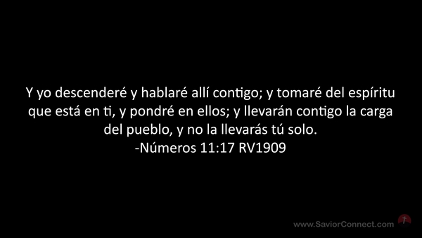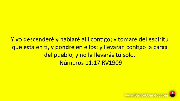 Y yo descenderé y hablaré allí contigo; y tomaré del espíritu que está en ti, y pondré en ellos; y llevarán contigo la carga del pueblo, y no la llevarás tú solo. -Números 11:17 RV1909
