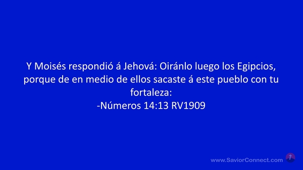 Y Moisés respondió á Jehová: Oiránlo luego los Egipcios, porque de en medio de ellos sacaste á este pueblo con tu fortaleza: -Números 14:13 RV1909