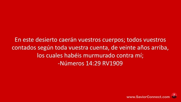 En este desierto caerán vuestros cuerpos; todos vuestros contados según toda vuestra cuenta, de veinte años arriba, los cuales habéis murmurado contra mí; -Números 14:29 RV1909