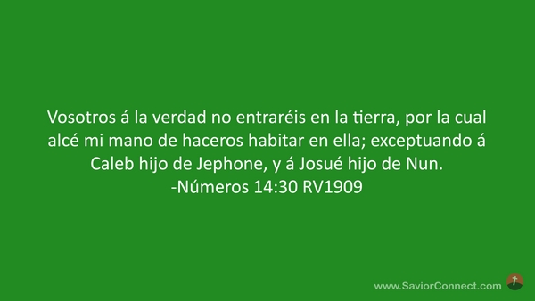 Vosotros á la verdad no entraréis en la tierra, por la cual alcé mi mano de haceros habitar en ella; exceptuando á Caleb hijo de Jephone, y á Josué hijo de Nun. -Números 14:30 RV1909