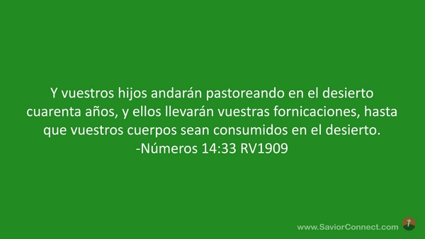Y vuestros hijos andarán pastoreando en el desierto cuarenta años, y ellos llevarán vuestras fornicaciones, hasta que vuestros cuerpos sean consumidos en el desierto. -Números 14:33 RV1909