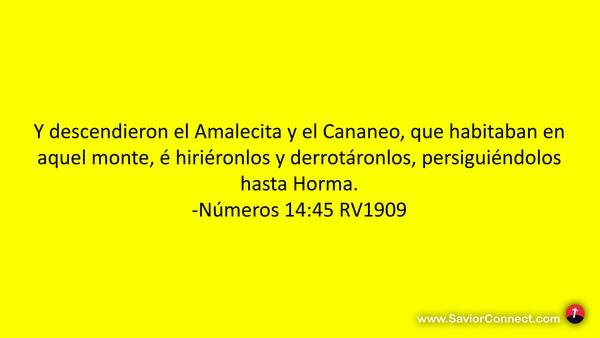 Y descendieron el Amalecita y el Cananeo, que habitaban en aquel monte, é hiriéronlos y derrotáronlos, persiguiéndolos hasta Horma. -Números 14:45 RV1909