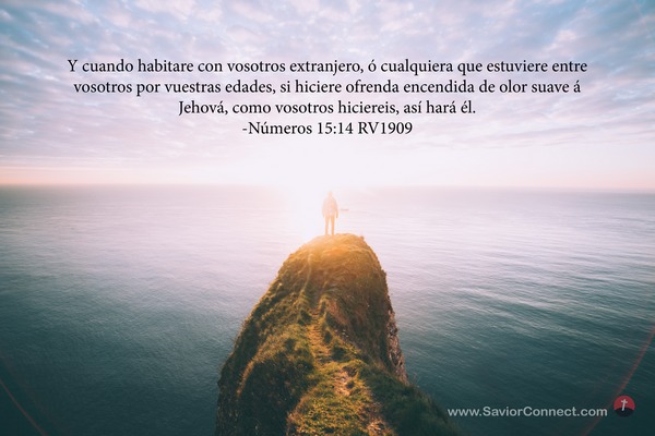 Y cuando habitare con vosotros extranjero, ó cualquiera que estuviere entre vosotros por vuestras edades, si hiciere ofrenda encendida de olor suave á Jehová, como vosotros hiciereis, así hará él. -Números 15:14 RV1909