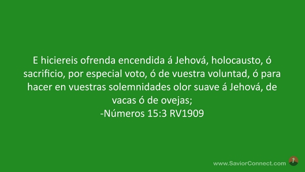 E hiciereis ofrenda encendida á Jehová, holocausto, ó sacrificio, por especial voto, ó de vuestra voluntad, ó para hacer en vuestras solemnidades olor suave á Jehová, de vacas ó de ovejas; -Números 15:3 RV1909
