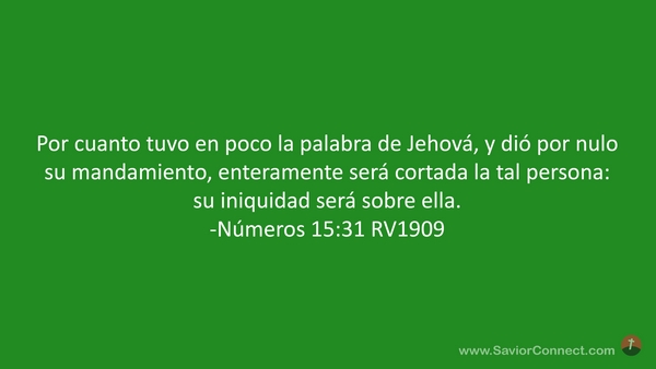Por cuanto tuvo en poco la palabra de Jehová, y dió por nulo su mandamiento, enteramente será cortada la tal persona: su iniquidad será sobre ella. -Números 15:31 RV1909