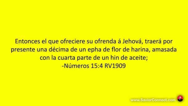 Entonces el que ofreciere su ofrenda á Jehová, traerá por presente una décima de un epha de flor de harina, amasada con la cuarta parte de un hin de aceite; -Números 15:4 RV1909