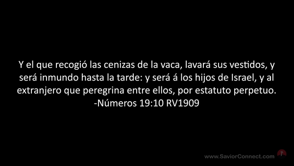 Y el que recogió las cenizas de la vaca, lavará sus vestidos, y será inmundo hasta la tarde: y será á los hijos de Israel, y al extranjero que peregrina entre ellos, por estatuto perpetuo. -Números 19:10 RV1909