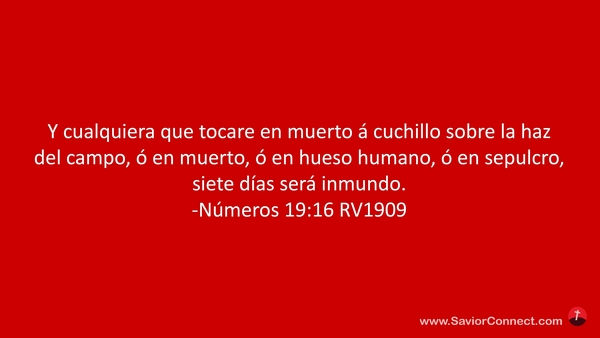 Y cualquiera que tocare en muerto á cuchillo sobre la haz del campo, ó en muerto, ó en hueso humano, ó en sepulcro, siete días será inmundo. -Números 19:16 RV1909