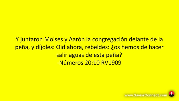Y juntaron Moisés y Aarón la congregación delante de la peña, y díjoles: Oid ahora, rebeldes: ¿os hemos de hacer salir aguas de esta peña? -Números 20:10 RV1909