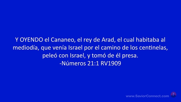 Y OYENDO el Cananeo, el rey de Arad, el cual habitaba al mediodía, que venía Israel por el camino de los centinelas, peleó con Israel, y tomó de él presa. -Números 21:1 RV1909