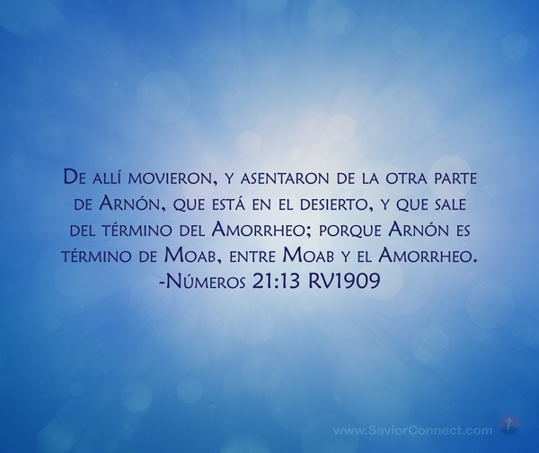 De allí movieron, y asentaron de la otra parte de Arnón, que está en el desierto, y que sale del término del Amorrheo; porque Arnón es término de Moab, entre Moab y el Amorrheo. -Números 21:13 RV1909