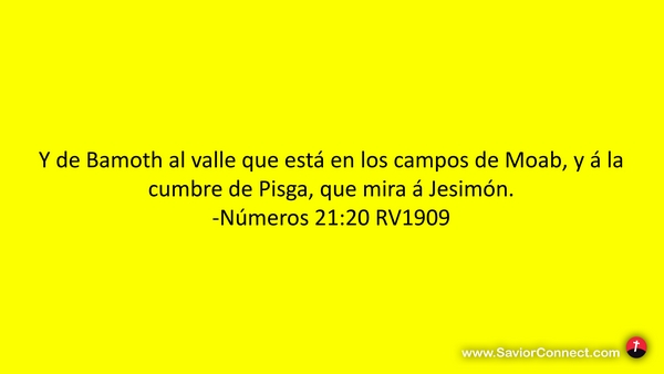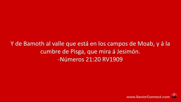 Y de Bamoth al valle que está en los campos de Moab, y á la cumbre de Pisga, que mira á Jesimón. -Números 21:20 RV1909