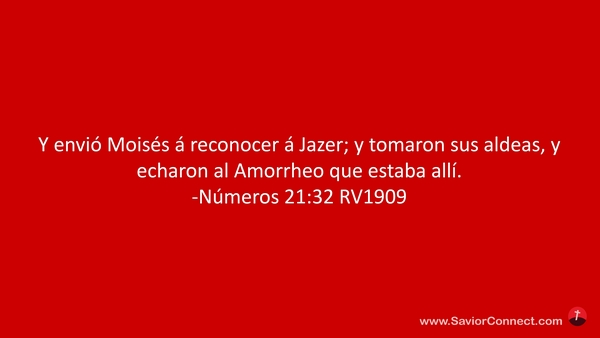 Y envió Moisés á reconocer á Jazer; y tomaron sus aldeas, y echaron al Amorrheo que estaba allí. -Números 21:32 RV1909